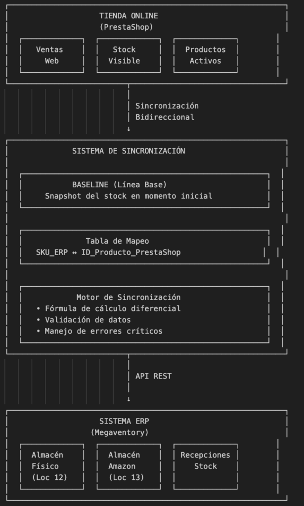 Este sistema de sincronización de inventario representa una solución robusta y escalable para uno de los problemas más complejos del e-commerce moderno: mantener el stock consistente en tiempo real a través de múltiples sistemas y canales de venta.